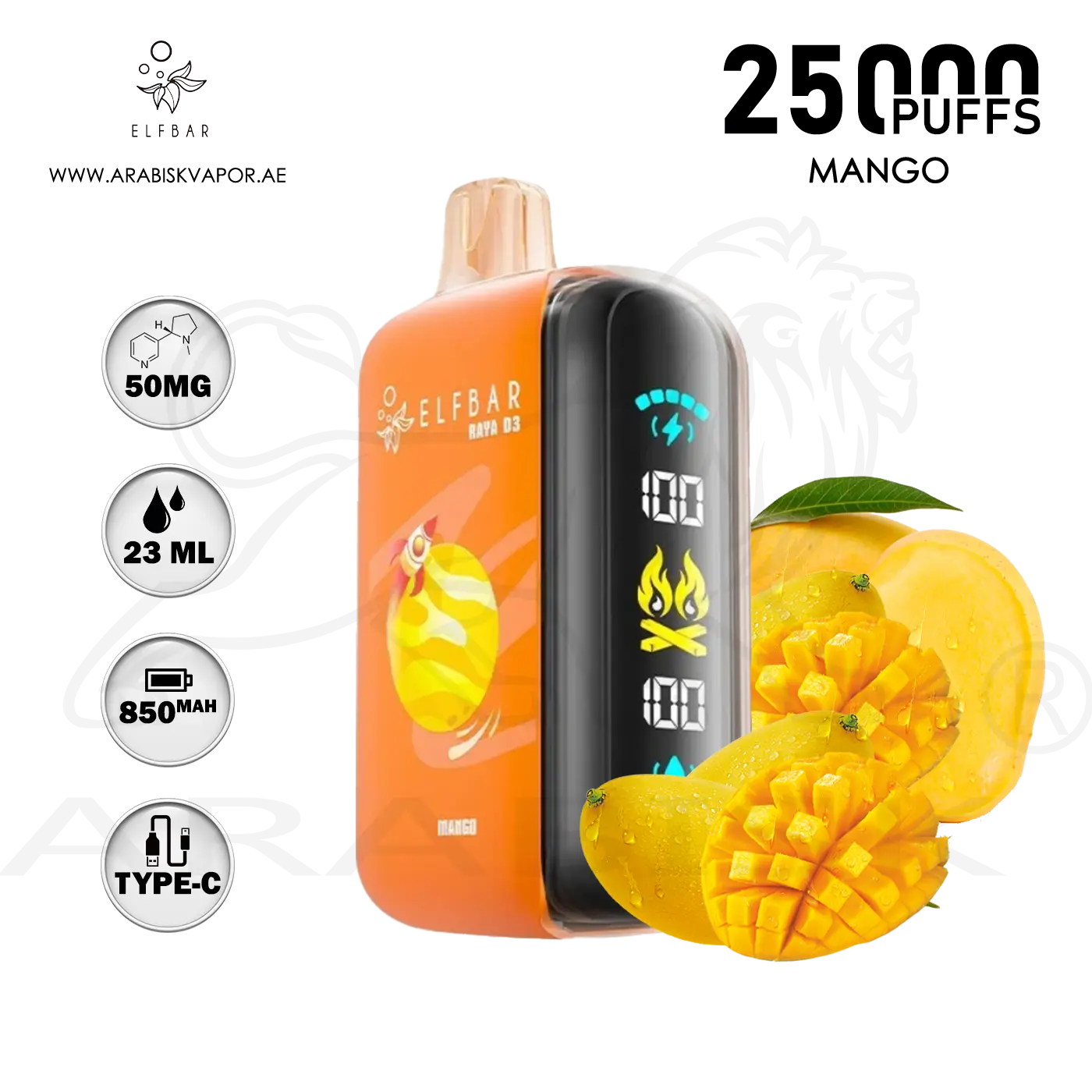 ELFBAR RAYA D3 25000 PUFFS 50MG - MANGO