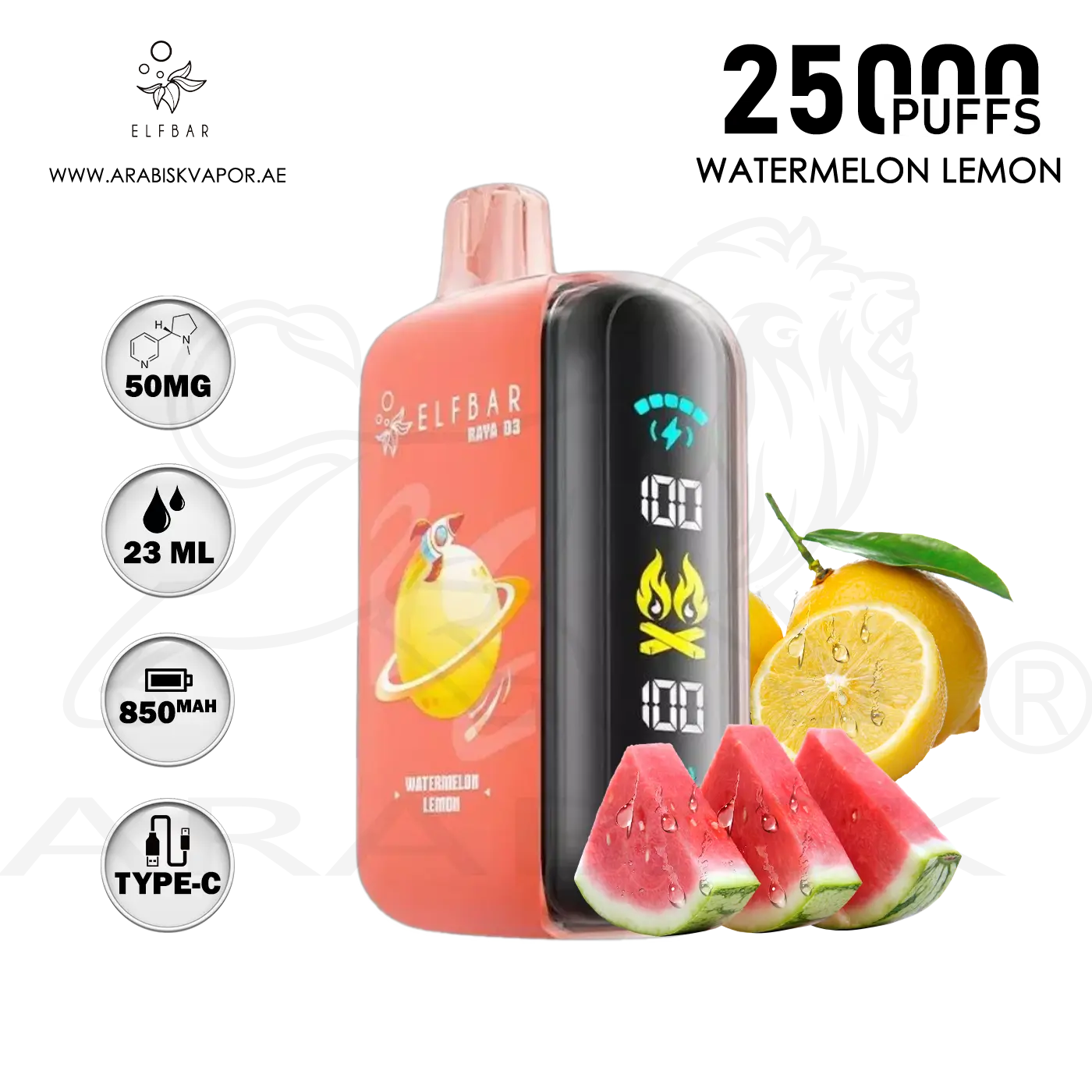 ELFBAR RAYA D3 25000 PUFFS 50MG - WATERMELON LEMON