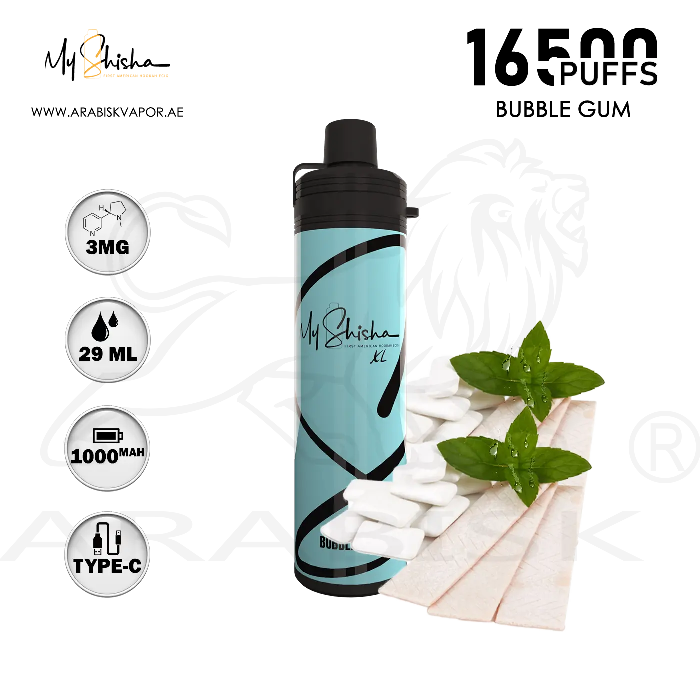 MY SHISHA XL 16500 DTL PUFFS 3MG - BUBBLE GUM