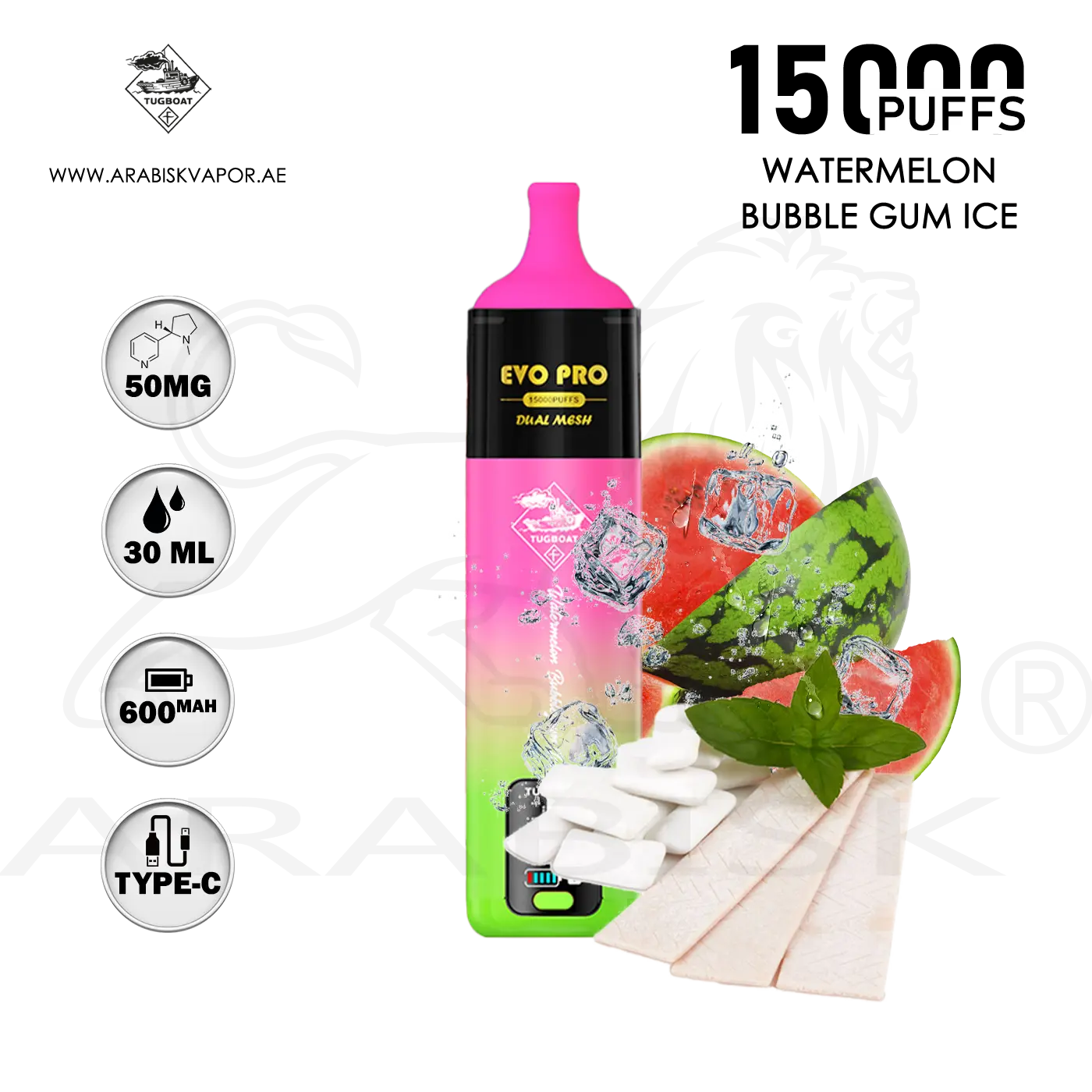 TUGBOAT EVO PRO 15000 PUFFS 50MG - WATERMELON BUBBLE GUM ICE